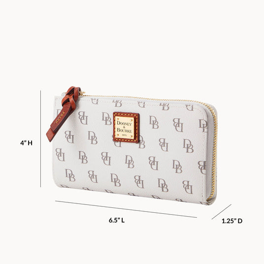 This zippered wristlet, made from coated cotton with a silky finish, is slim and supportive to throw together with another bag, yet chic enough to stand alone.