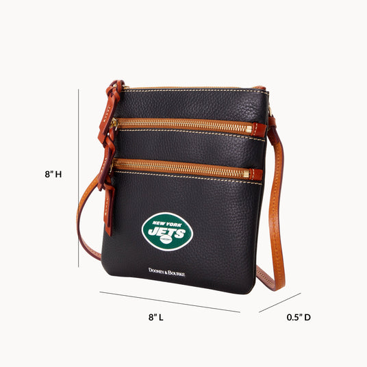 Be a fan wherever you go when you carry this pebble leather crossbody imbued with the subtle logo from your favorite NFL team. Two exterior pockets keep your must-haves at arm's reach, while a zipper top secures everything.Details
