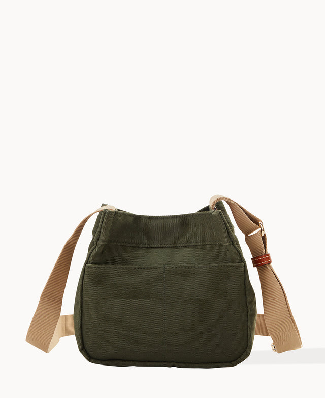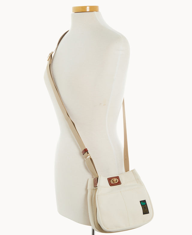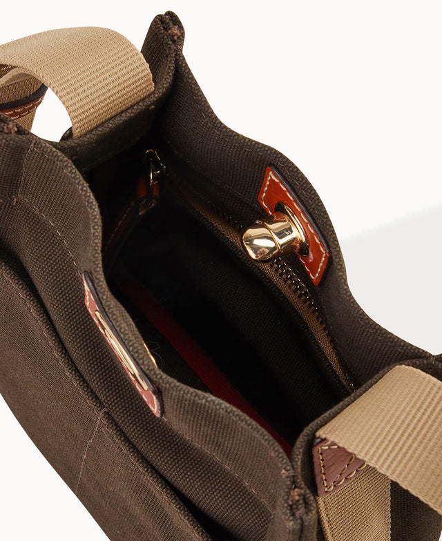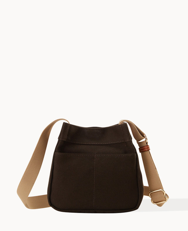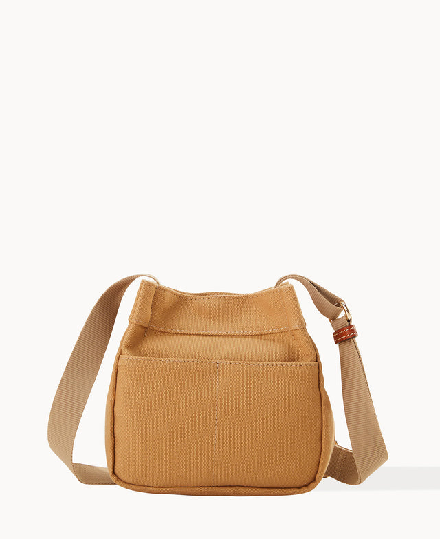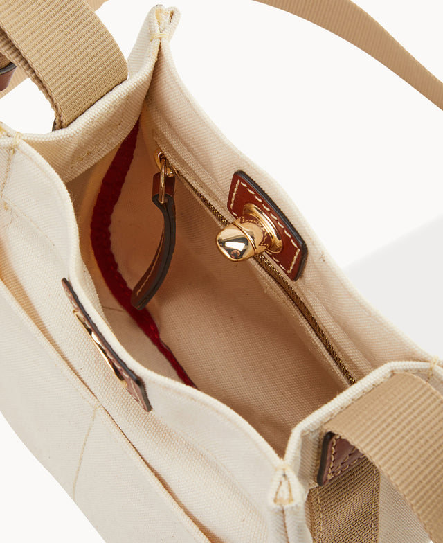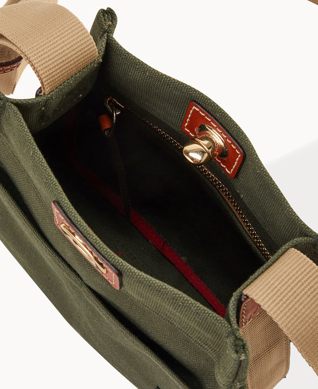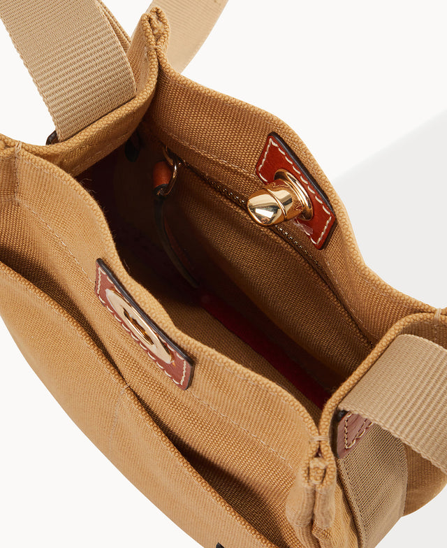 The Canvas Crossbody 20 offers compact organization in a perfectly proportioned silhouette for everyday essentials. The interior easily accommodates a small wallet, phone, keys, sunglasses, and a few personal items, with a slip pocket to keep smaller accessories neatly arranged. A turn-lock closure secures your belongings, while the exterior pocket provides quick access to items like transit cards or receipts.