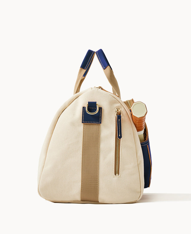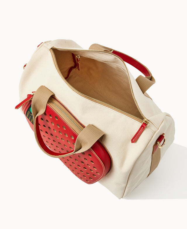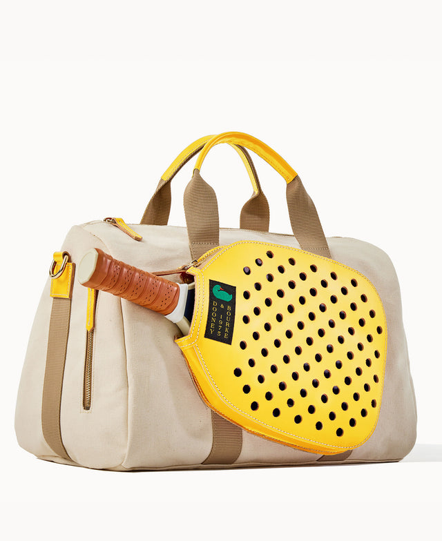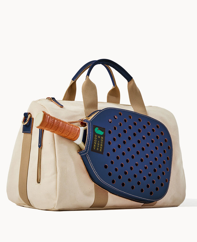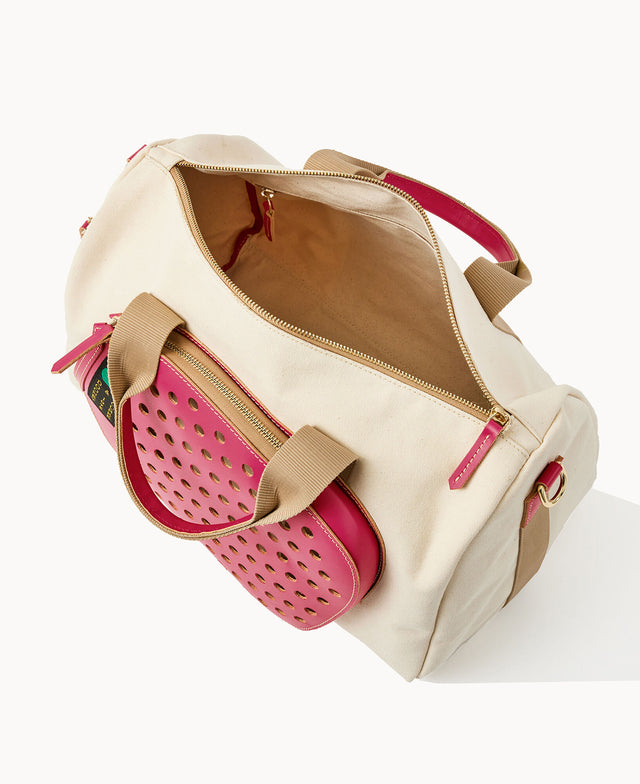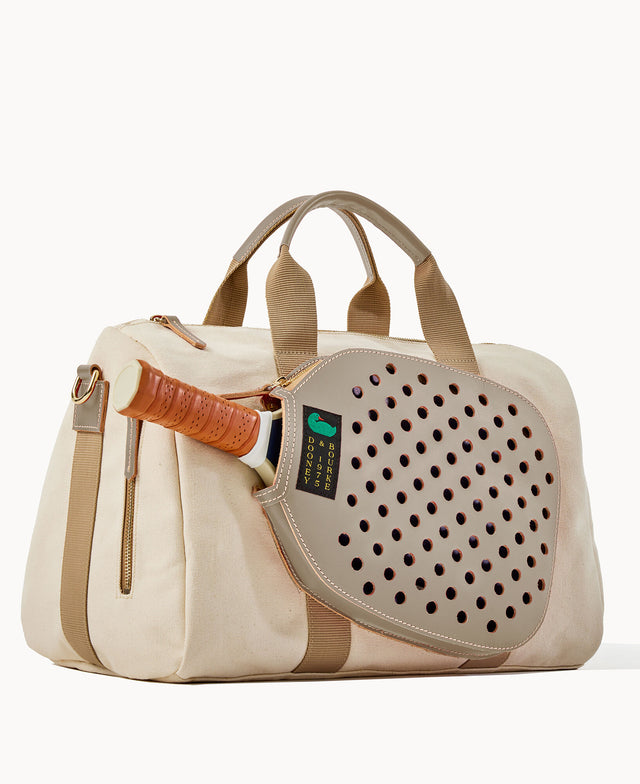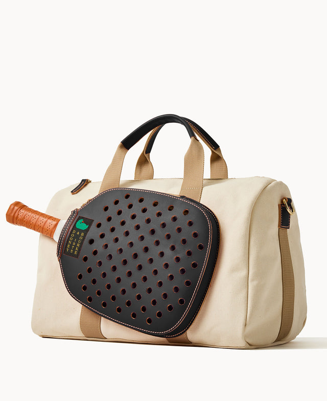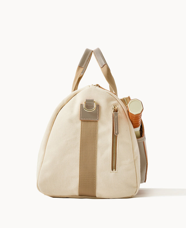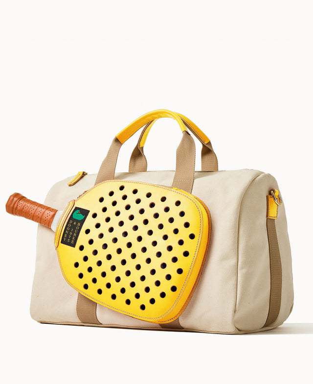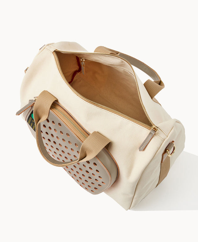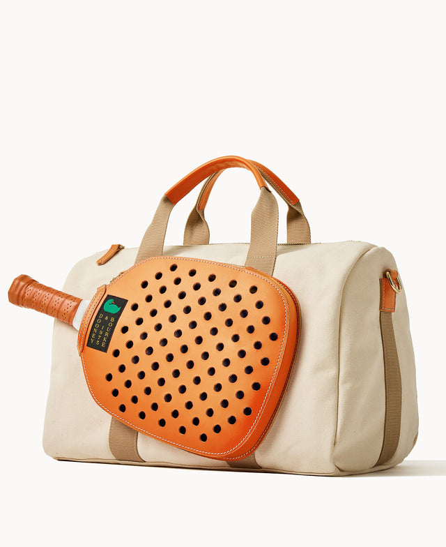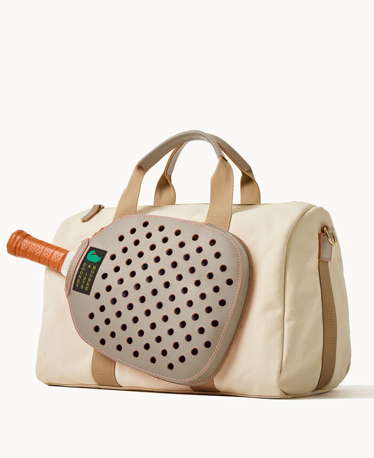 Take all your pickleball essentials with you in style. This Italian canvas duffle will carry it all, from your phone to your racquet and everything in between.Details