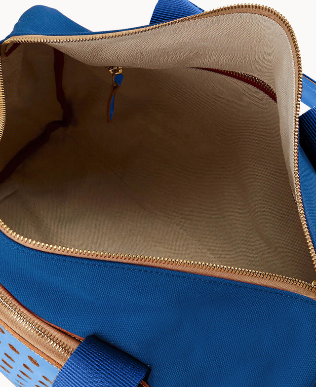 The Pickleball Canvas collection is to be gently wiped with a soft damp cloth and light pressure. Do not use any detergents, soaps, or solvents on any area of the canvas or leather material.