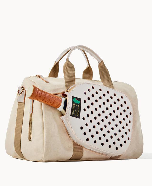 Take all your pickleball essentials with you in style. This Italian canvas duffle will carry it all, from your phone to your racquet and everything in between.