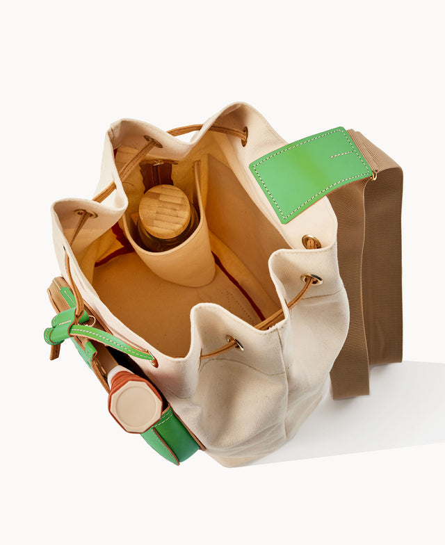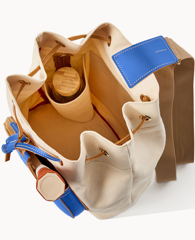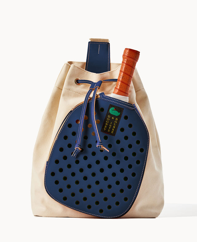 The Pickleball Canvas collection is to be gently wiped with a soft damp cloth and light pressure. Do not use any detergents, soaps, or solvents on any area of the canvas or leather material.
