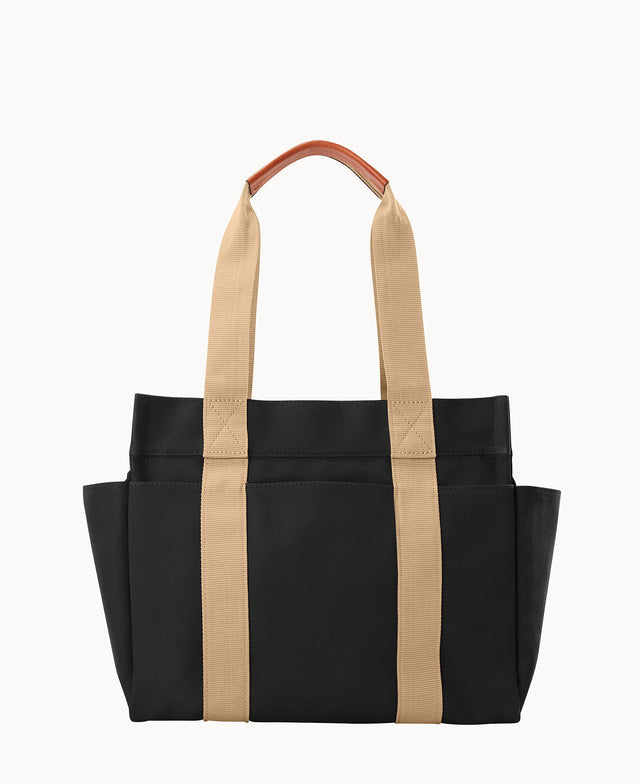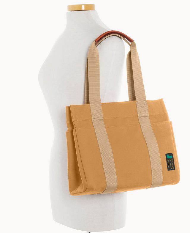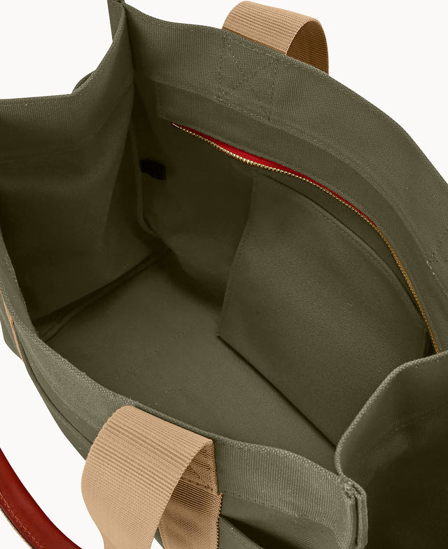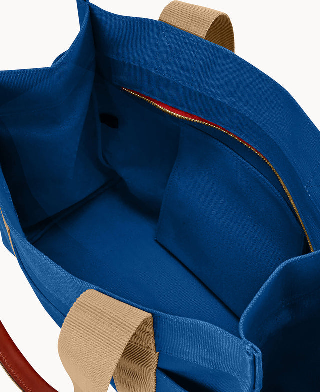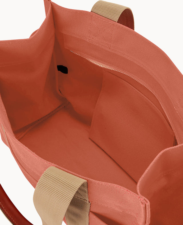 The Canvas Tote offers everyday functionality with a clean, structured design. The interior easily fits a tablet, planner, full-size wallet, makeup pouch, sunglasses, and a reusable water bottle, with room left for a book or small laptop. Two slip pockets and a zip pocket keep smaller essentials organized, while side compartments provide convenient access to items like keys or a phone. Designed for both practicality and ease, the sturdy top handles allow for a comfortable shoulder or hand carry, making it perfect for work, errands, or weekend outings. Its lightweight construction and versatile shape transition seamlessly from the office to the farmers’ market or beach, adding effortless polish to your daily routine.