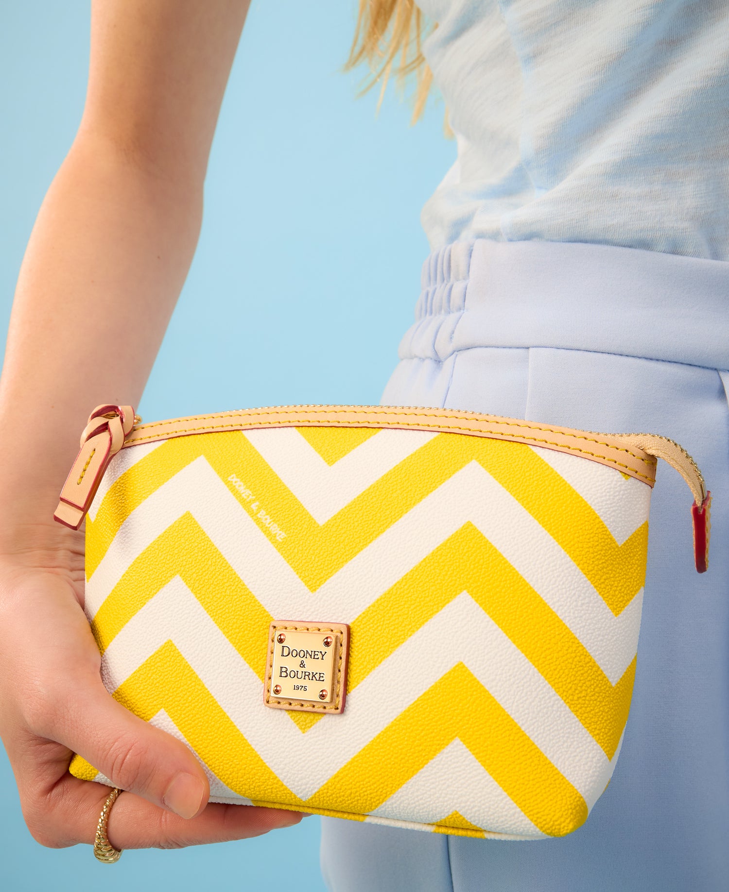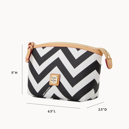 Add a little intrigue to your everyday with this adorable cosmetic case. Crafted from lightweight Italian coated and featuring a bold Chevron print, this style is one for the books!Details