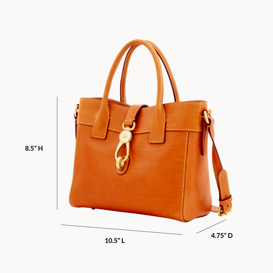 - Signature double-sided Dooney & Bourke logo lock closure.