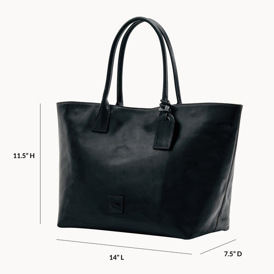 Supple Florentine leather has the look and feel of fine saddlery and, like saddle leather, it develops a rich patina over time. Designed to be easily worn over your shoulder and crafted wth a roomy interior, this tote is the perfect companion for wherever your life takes you.