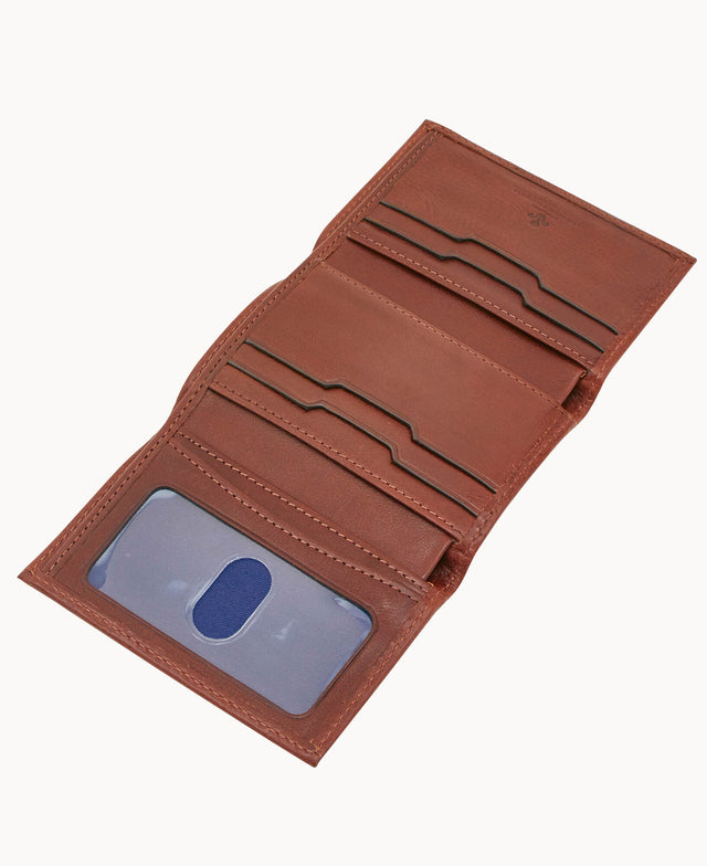 The Florentine Trifold Wallet offers compact organization with thoughtfully designed storage for daily essentials. Inside, it features multiple card slots, an ID window, a divided bill compartment, and a snap closure that keeps contents secure while maintaining a slim profile. The trifold design allows you to carry cash, cards, and receipts without adding bulk. Perfectly sized for both handbags and smaller crossbody styles, this wallet is ideal for everyday use or travel. Its minimalist silhouette slips easily into pockets or clutches, making it a refined companion for on-the-go organization. Whether used as your primary wallet or as a sleek secondary option for lighter days, it embodies classic functionality with effortless sophistication.