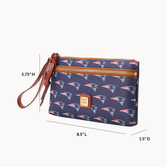 - Outside front zip pocket. One inside zip pocket. Six credit card slots.