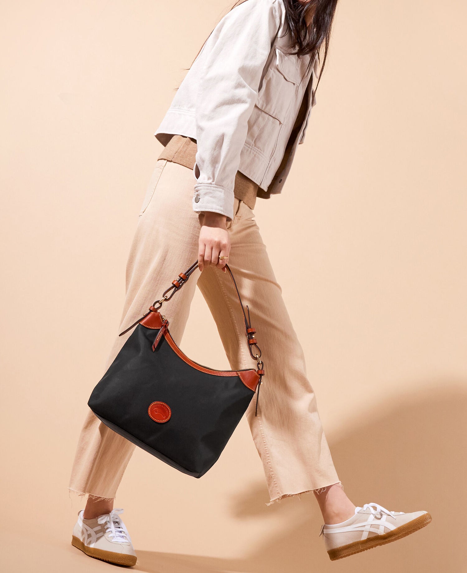 This casual shoulder bag, made from lightweight nylon that's easy to clean and maintenance-free, is a stylish option for effortless days.Details