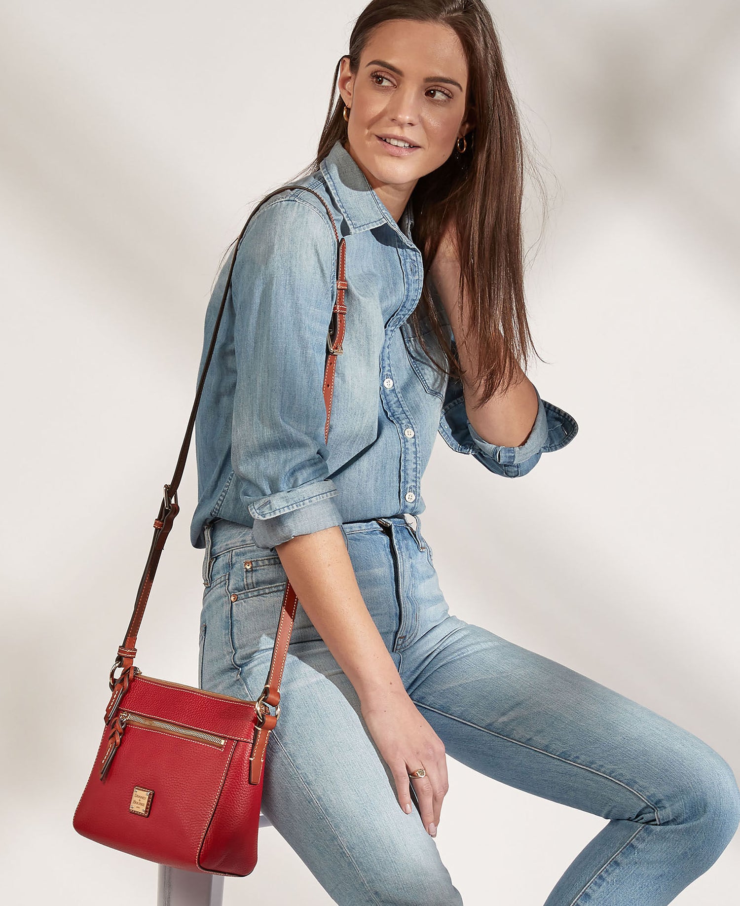 Streamlined and secure, this zip crossbody is up for an adventure with its plentiful pockets and compact shape. Pebbled leather deepens and burnishes over time, adding to its everyday appeal.Details