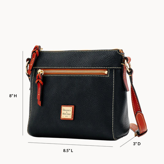 Streamlined and secure, this zip crossbody is up for an adventure with its plentiful pockets and compact shape. Pebbled leather deepens and burnishes over time, adding to its everyday appeal.Details