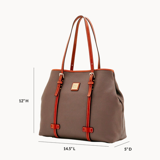 Rich pebbled leather and functional style define this classic tote. Convenient gusset snaps allow you to expand the storage space as needed, and a magnetic closure keeps contents secure. Stylish and versatile, it's an ideal carryall for your weekday commute or weekend errands.Details