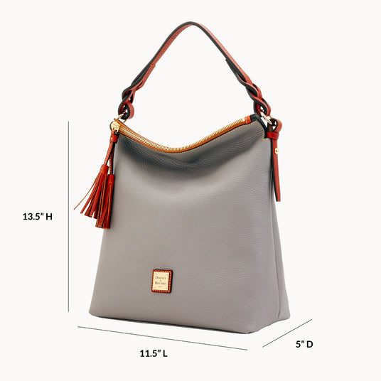 The Pebble Grain Collection is renowned for the rich texture and exceptional durability of its leather. The Sloan is a slouchy hobo pairing rich pebbled leather with a chunky zipper and large tassel pulls.Details