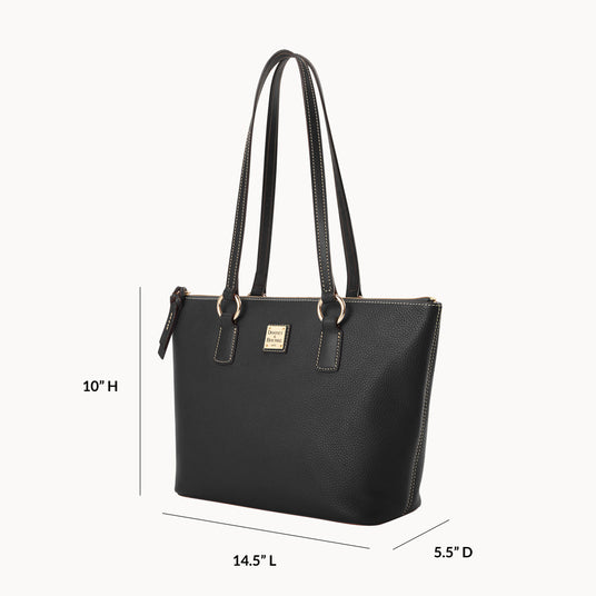 All your essentials will be secure inside this zippered tote, crafted from textured Italian pebbled leather.