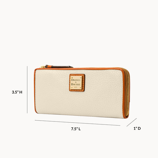 The Pebble Grain Zip Clutch is perfectly sized to keep your essentials organized without adding bulk. It features two spacious compartments, a center zip pocket for coins or valuables, and eight credit card slots for streamlined storage. There’s room for your cash, cards, ID, and smartphone, making it the ideal companion for dinners, events, or quick errands when you want to travel light.