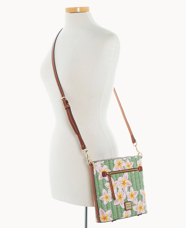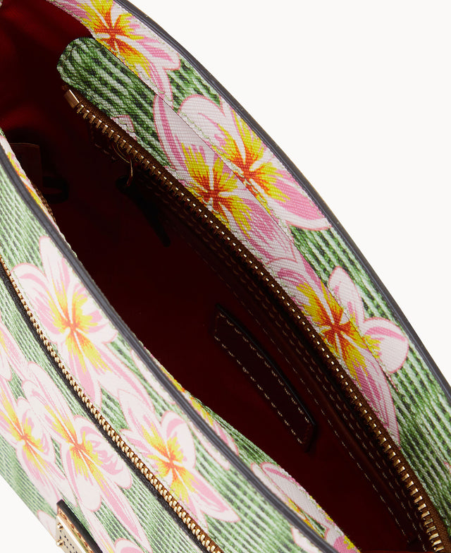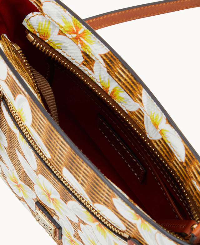 A stylish favorite for spring and summer. This floral find is crafted from lightweight Italian coated cotton in a plumeria and wicker print.Details