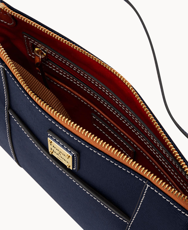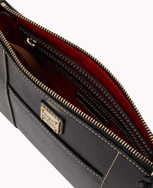 • One outside pocket. One inside zip pocket. Two inside pockets.