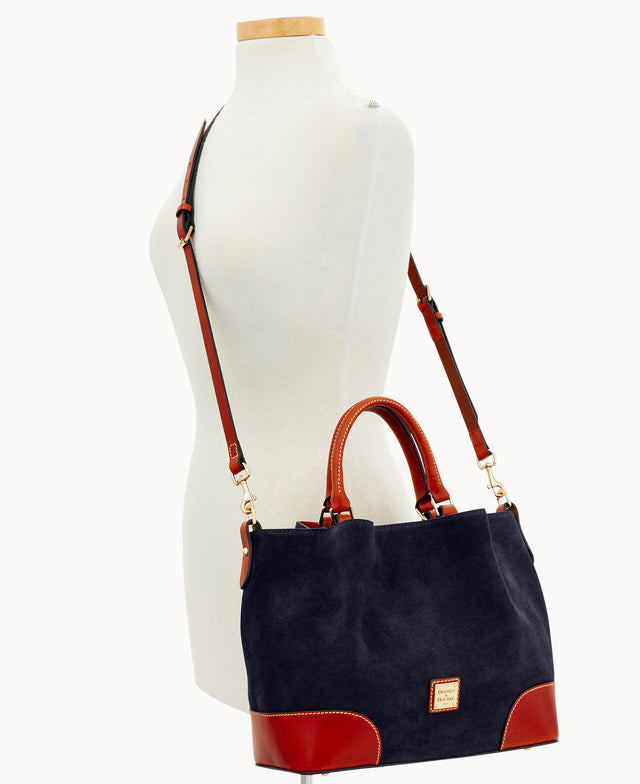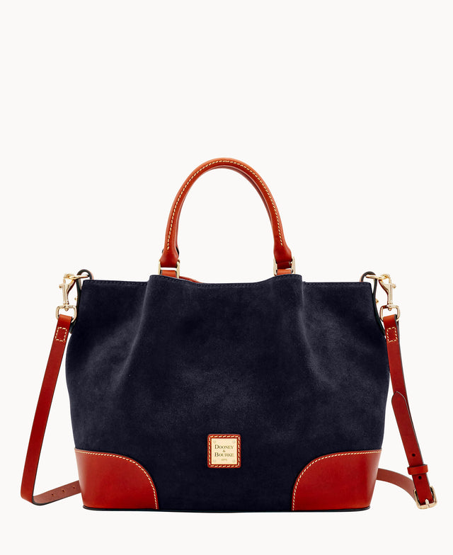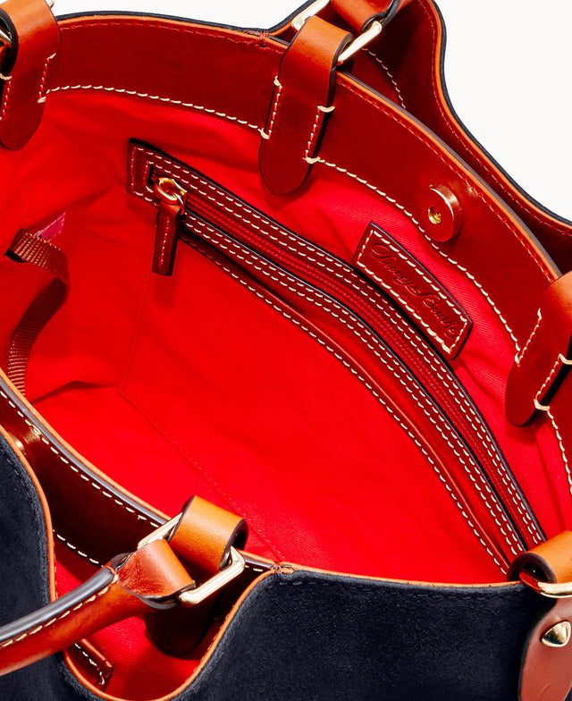Dooney & Bourke's Suede Collection has been treated for general water repellency. However, some water absorption is possible within excessive water conditions. If this happens, a dry cloth should be used to blot the excess liquid and the material should be allowed to dry thoroughly. Once dry, a suede brush should be used to gently lift the nap
