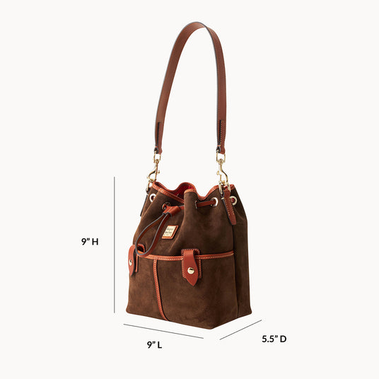 Dooney & Bourke's Suede Collection has been treated for general water repellency. However, some water absorption is possible within excessive water conditions. If this happens, a dry cloth should be used to blot the excess liquid and the material should be allowed to dry thoroughly. Once dry, a suede brush should be used to gently lift the nap