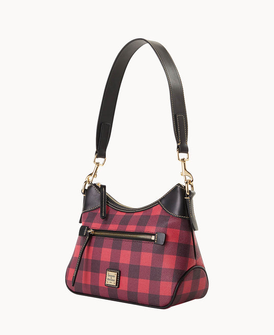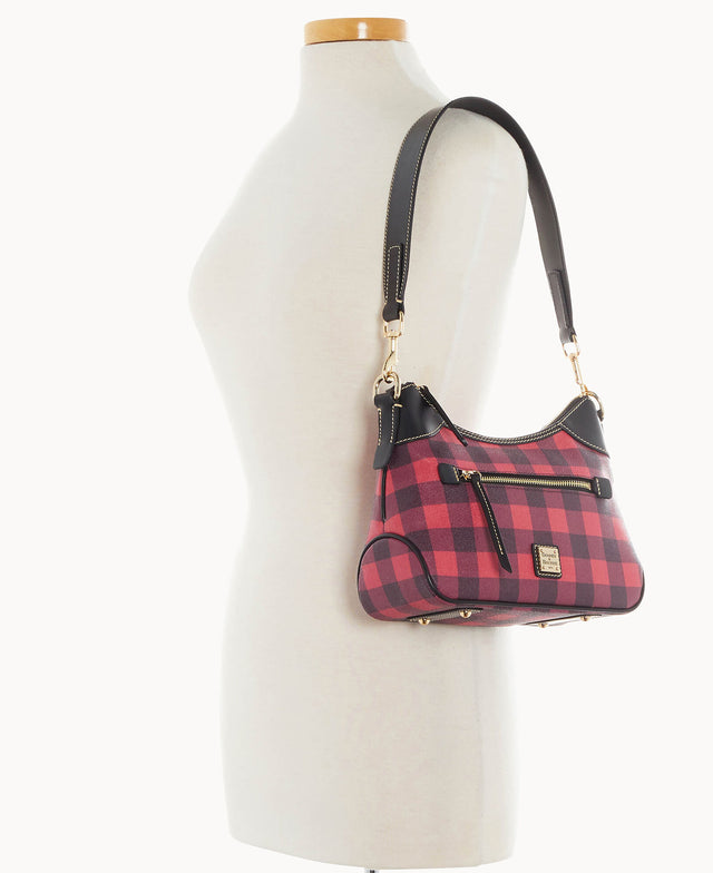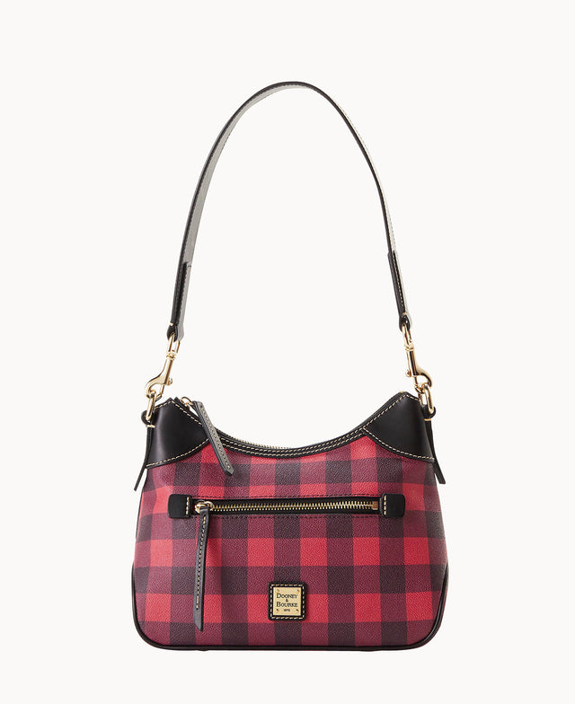 This small hobo has just enough room for all of your essentials, and a couple extras! Crafted from texturized Italian coated cotton, sleek leather accents, and 14k gold-plated hardware, this seasonal style is simply stunning.Details
