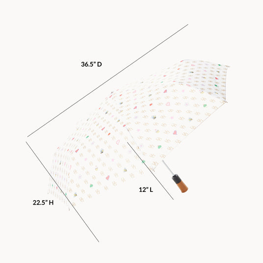 Protect your bag and stay dry under a chic D&B umbrella that collapses to just the right size.Details
