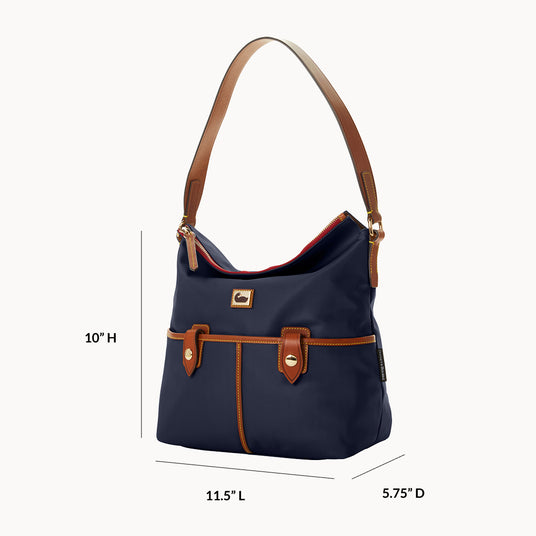 The Wayfarer Sac combines slouchy hobo style with the ease of a nylon bag. Contrasting leather trim provides a crisp accent and multiple pockets ensure organized storage. Lightweight and durable, it is the perfect choice for casual everyday wear.Details