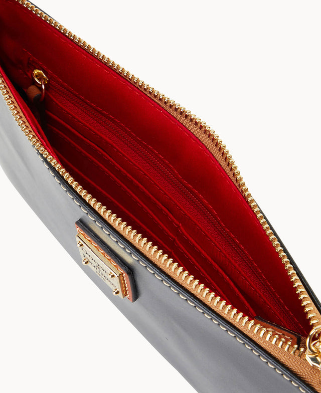 Crafted from smooth Italian leather, this stylish wristlet is the perfect addition to your favorite bag.Details