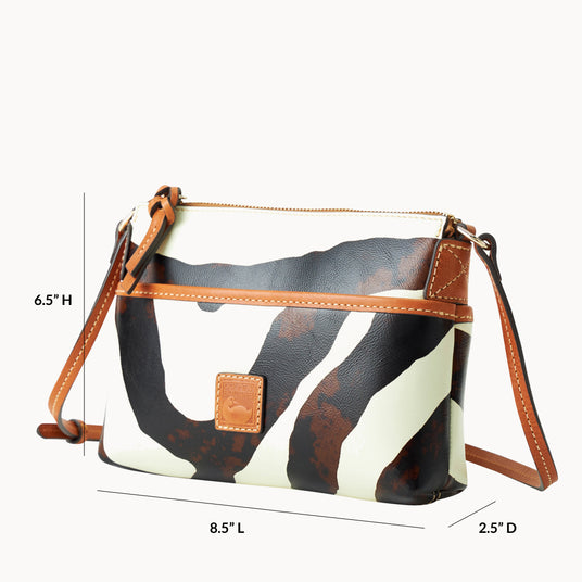 This full grain, vegetable tanned leather comes from Italy, and has an aniline finish. It is natural milled for soft temper to a 1.6-1.8mm thickness with a Zebra print. Select styles in the collection feature whip stitched handles and braided leather drawstring pulls.